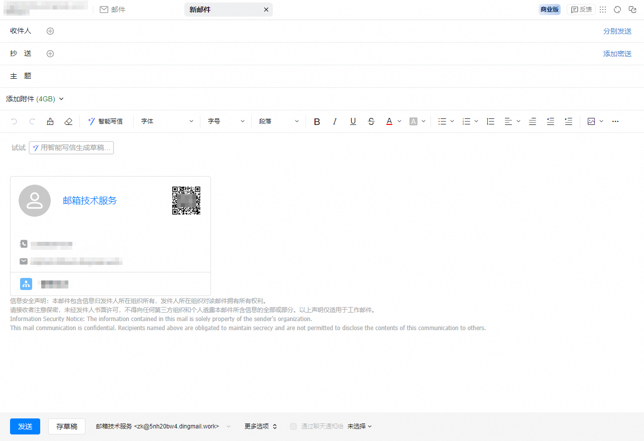 开启后成员写邮件时默认携带企业签名,成员可自行删除。