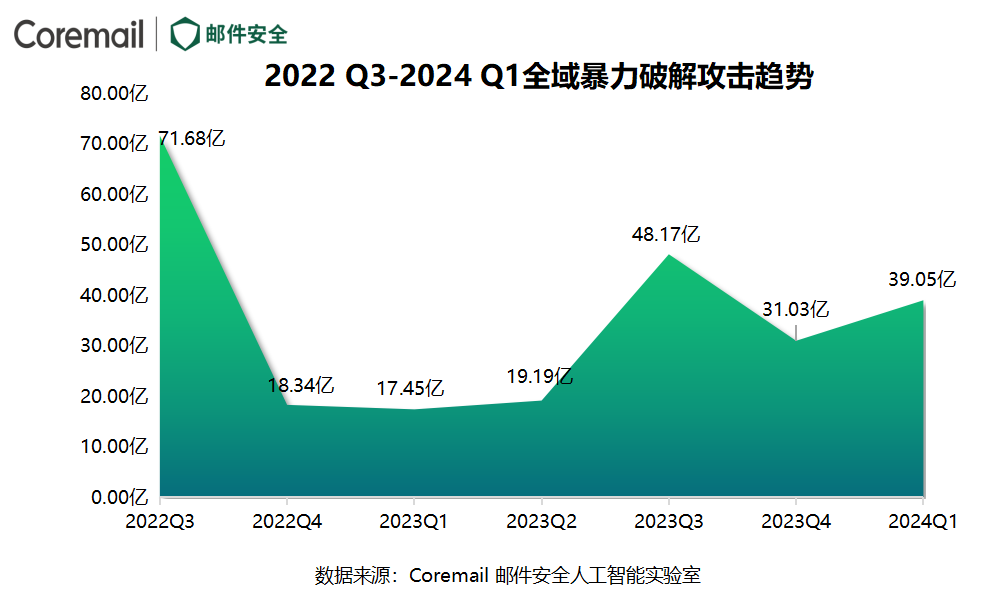 2024年第一季度,全国企业级用户遭受了39.05亿次无差别的暴力破解攻击,其中攻击者成功破解了819.3万次