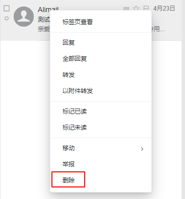 2,鼠标右击邮件删除