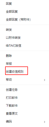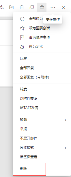 不选中直接鼠标右击邮件,可操作包括回复(回复、回复全部)、转发(转发、附件方式转发)、标记已读、标记未读、移动、举报、删除。