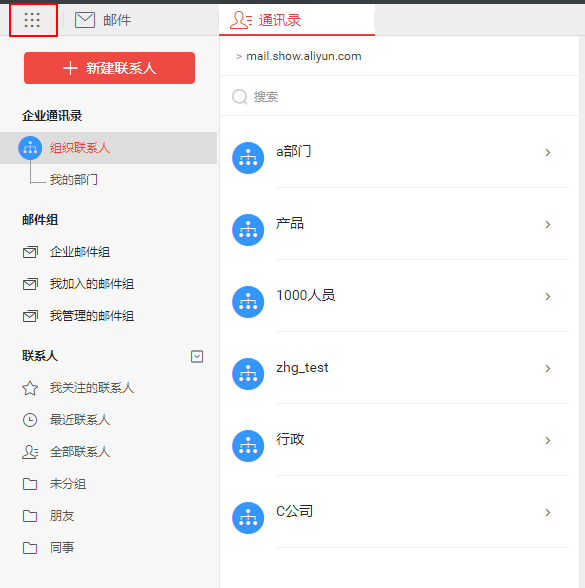 可以切换到企业通讯录和个人联系人页面。