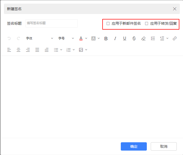 不同的签名设置可以应用于不同的场景:应用于新邮件签名或应用于转发/回复。
