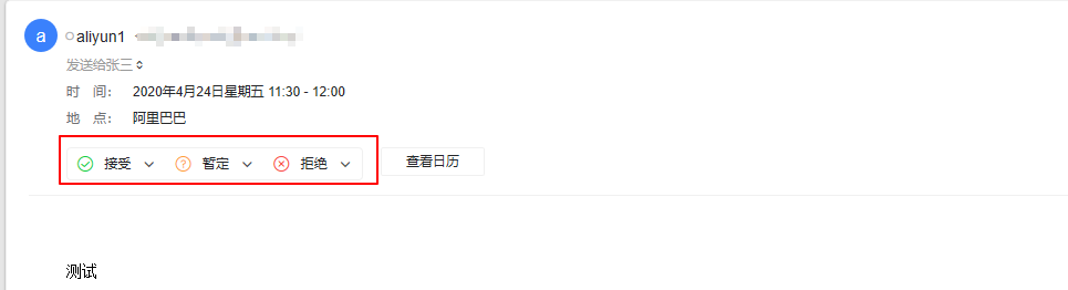 填写会议必要的条件,可以进行邮件发送,用户收到的就是一封会议邮件,邮件内有选项进行是否参与反馈:接收、暂定、拒绝。选择反馈时间。发件人将会收到是否参会的反馈邮件。从而让办公简单化。