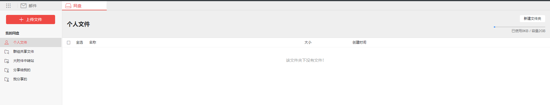 右上角有邮箱网盘容量信息,默认每个邮箱为5G。