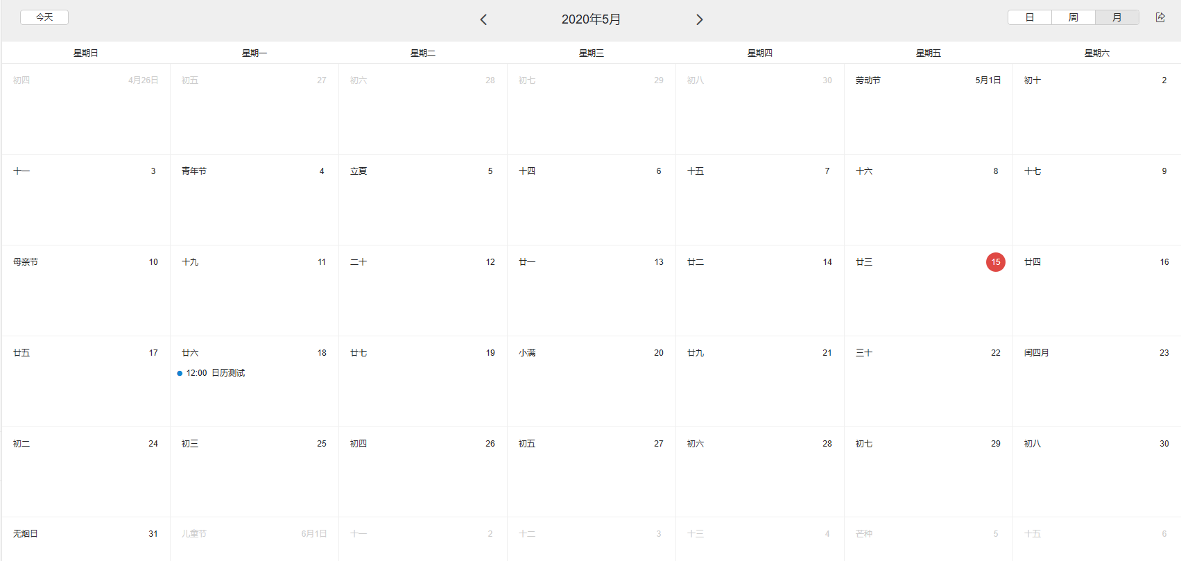 使用月功能查看,还可以展示农历、法定节假日等信息
