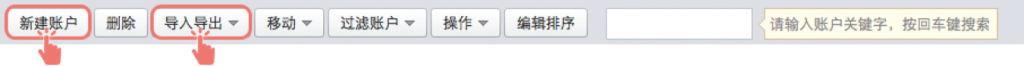3、 点击“新建账号”或批量操作“导入导出”账号。