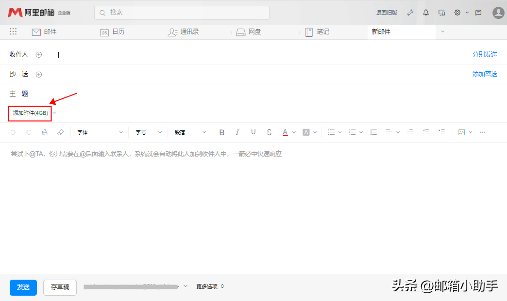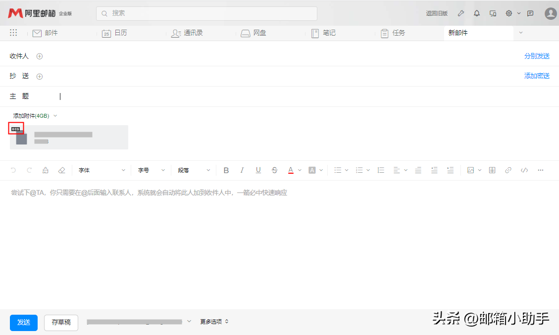 关于阿里邮箱普通附件超大附件就介绍到这里,希望对大家有所帮助。欢迎大家一起来交流。